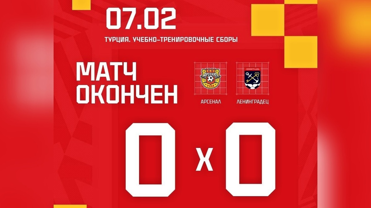 Тульский «Арсенал» в пятницу, 7 февраля, завершает второй зимний сбор в Турции двумя контрольными матчами. В первом из них, который начался в 11 часов, подопечные Александра Сторожука сыграли с клубом «Ленинградец», выступающим в дивизионе «А» Второй лиги. По ходу встречи обе команды имели неплохие моменты для взятия ворот, но счёт так и не был открыт – ничья 0:0. Отметим, что «Арсенал» проводил игру условно вторым составом с минимальным количеством замен. В первом тайме канониры вышли на поле в таком составе: Левашов (к), Мухин, Волков, Семенчук, Соколов, Сергеев, Раздорских, Цараев, Хабибов, Азявин, Арутюнов. Во втором тайме Левашова в створе арсенальских ворот сменил Кашинцев. В 17 часов соперником «Арсенала» в ещё одной контрольной встрече станет клуб «Барс Иссык-Куль» из Кыргызстана. После нескольких дней отдыха «Арсенал» вернётся в Турцию на третий сбор. Весеннюю часть чемпионата Первой лиги тульские футболисты начнут 1-го марта выездным матчем против «КамАЗа» из Набережных Челно