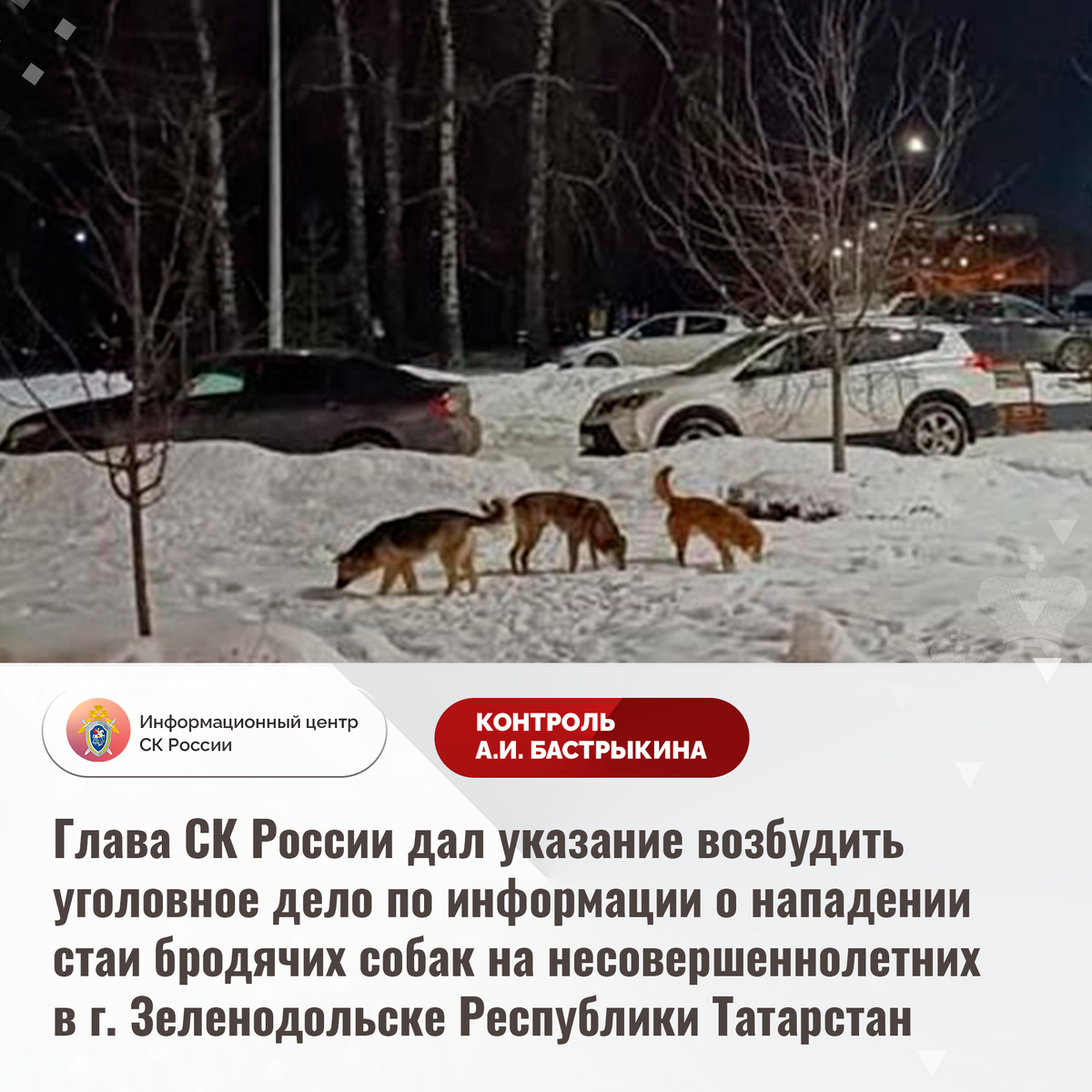 Глава СК России дал указание возбудить уголовное дело по информации о нападении стаи бродячих собак на несовершеннолетних в г. Зеленодольске Республики Татарстан