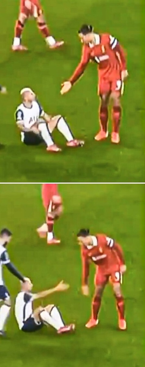 Ван Дейк поиздевался над Ришарлисоном в матче Кубка лиги: защитник «Ливерпуля» протянул упавшему форварду «Тоттенхэма» руку, но сразу убрал ее