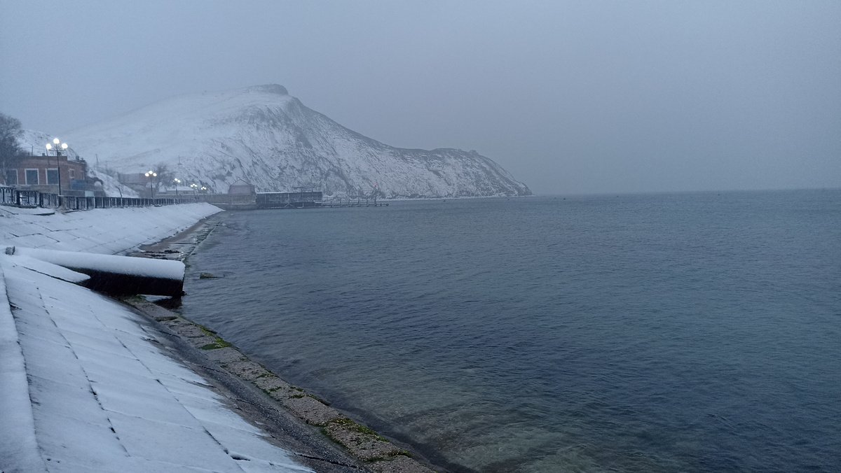 За окном завывает ветер, снег то валит мокрыми хлопьями, то сыплет крупой. Температура болтается вокруг нуля. То чуть ниже, то чуть выше. На дорогах снежная мокрая каша. А море удивительно спокойно взирает на февральскую кутерьму :) Синоптики обещали - синоптики сделали :)) Сначала задул ветер с севера. Потом стало накрапывать. Вслед за моросью пришёл дождь и поливал дня два. 5-го вечером с неба полетели первые невесомые снежинки. Уу-у, думала я, вот так обещанный снегопад... Но февраль решил не сдаваться, показать, что он таки зимний месяц! В интернете к ночи было полно фоток заснеженных перевалов, склонов гор и буксующих на подъемах машин. А утро 6 февраля меня встретило вот таким: гор и моря практически не видно, зелень травы припорошена белизной, а сверху летят и летят мокрые хлопья... Я смотрела из окна на снежную кашу на дороге, на кутающихся в воротники и капюшоны людей и не могла заставить себя выйти прогуляться. Ну или сходить хотя бы в магазин за хлебом и молоком :) Не, не х
