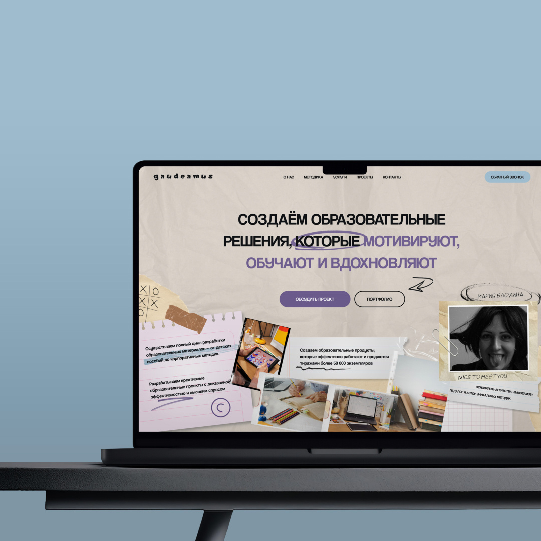 Работа над сайтом GAUDEAMUS началась с глубокого погружения в образовательную специфику и личность автора методологии. Нам предстояло создать digital-пространство, которое отразило бы 15-летний опыт работы в образовании и впечатляющие результаты: более 50,000 реализованных экземпляров продукции и свыше 100,000 довольных клиентов.