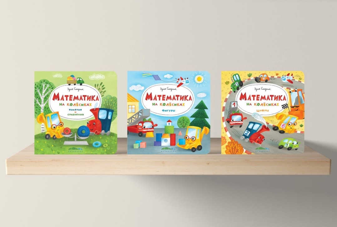 В типографию отправилась новинка – первые книги-картонки о математических понятиях для самых маленьких Зули Стадник из новой серии «Математика на колёсиках». Это сборники небольших рассказов для самых маленьких читателей, в которых они вновь встретятся с уже знакомыми героями: экскаватором Клюшей, паровозиком Шпунчиком, пожарной машинкой Гасей и их друзьями из серии «Детский сад на колёсиках». Только теперь их ждут новые приключения! Маленькие читатели вместе с любимыми машинками смогут считать друзей во время игры, свечи на праздничном торте, вагоны поезда и даже секунды до смены сигнала светофора. Короткие и занимательные рассказы помогут ребёнку правильно называть и находить цифры на окружающих их предметах и механизмах. Каждый разворот в этом сборнике знакомит ребёнка с одной геометрической фигурой. В коротких историях на примерах из повседневной жизни показывается, где встречаются эти фигуры, а небольшие задания помогают закрепить новые знания. В этом сборнике герои учатся разл