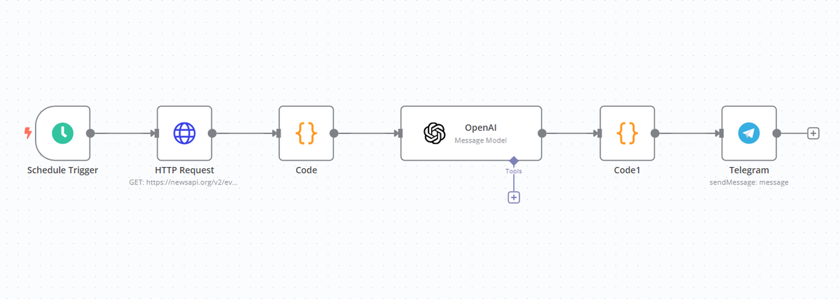 Модуль Telegram завершает цепочку автоматизации, отправляя готовые новости в нужный чат.
