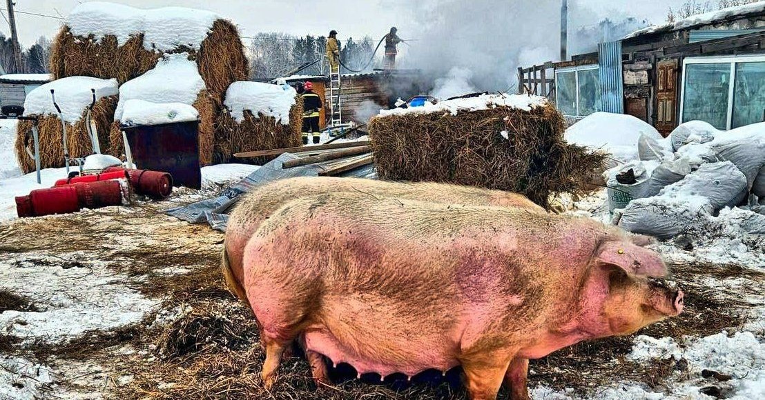 В конце прошлого года более тридцати свиней спасли из пожара в Красноярском крае. Пожарные на руках выносили животных из горящего здания.