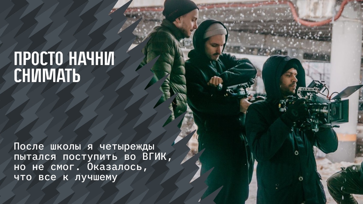 После школы я четырежды пытался поступить во ВГИК, но не смог. Переживал и грустил по этому поводу, потому что единственное, чего я хотел, это заниматься кино и режиссурой, видел себя только в этом. Оказалось, что все к лучшему.