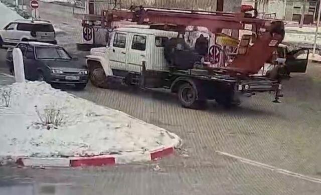 Автовышка «ГАЗ» без водителя протащила по АЗС в Михайловке машину «ВАЗ-2115»