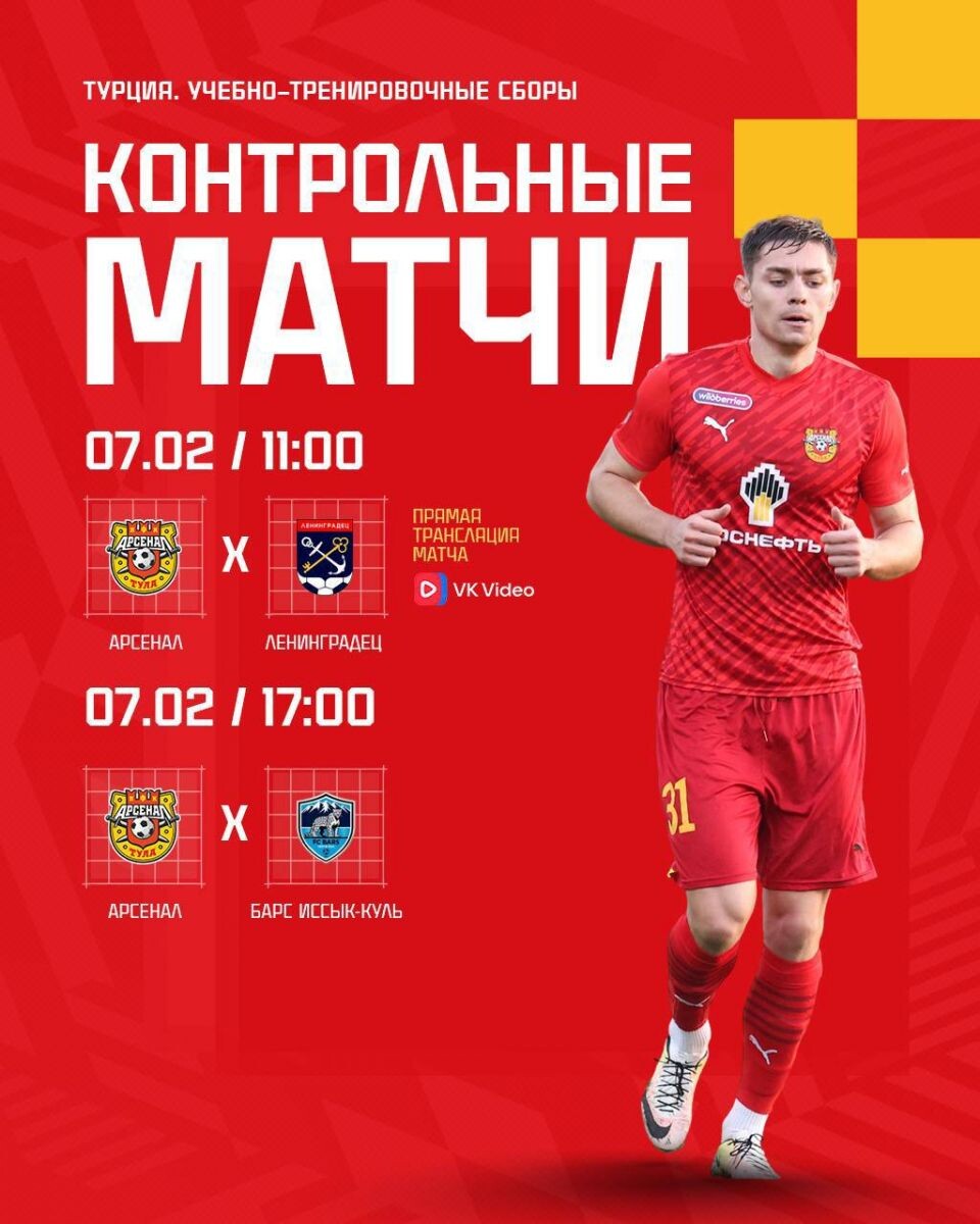 Тульский «Арсенал», находящийся на учебно-тренировочном сборе в Турции провёл две контрольные игры за день. Утром команда играла против «Ленинградца» из Ленинградской области, а после обеда сыграла с киргизской командой «Барс Иссык-Куль». Оба матча завершились с одинаковым счётом 0:0. Александр Сторожук в этих матчах задействовал всех игроков, которые находятся в команде, кроме травмированных. «Арсенал» завершает первый сбор, и игроки находятся под высокими тренировочными нагрузками. По этой причине не стоит обращать пристальное внимание на результаты матчей. Главное, что наставник туляков смог увидеть всех игроков команды в игровом режиме.