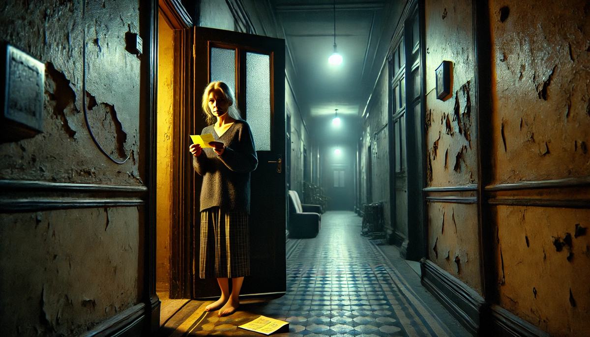 Поднявшись на свой этаж, Анна остановилась, переводя дух. В подъезде висела всё та же затхлая тишина, нарушаемая лишь гулом ветра за окном да скрипом половиц. Облупившиеся стены и паутина по углам навевали тоску.
