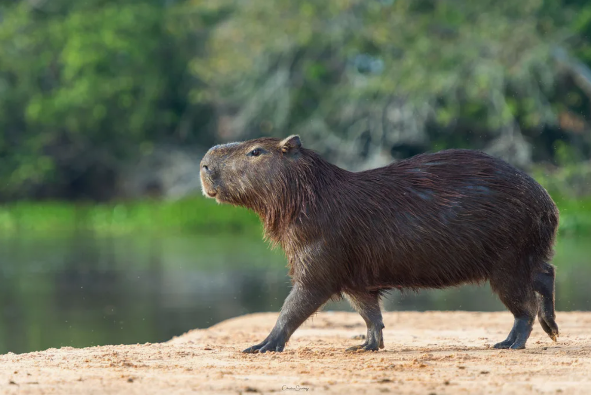 Капибары — это самые большие грызуны на планете. Их вес может достигать 66 кг, а длина — до 134 см. Самая крупная зарегистрированная капибара весила целых 91 кг! Несмотря на внушительные размеры, они обладают добродушным нравом и легко находят общий язык с разными животными. На капибарах часто сидят птицы, кролики и даже обезьяны. Эти животные просто устраиваются у них на спине, а капибары не возражают. Такое соседство полезно всем: птицы находят паразитов в шерсти, а капибары получают бесплатный «уход» и, возможно, даже массаж. Несмотря на спокойный вид, при необходимости капибары могут разгоняться до 35 км/ч. Они также великолепно плавают и живут рядом с водоёмами: реками, озёрами, болотами. Могут задерживать дыхание на 5 минут и даже спят в воде, оставляя на поверхности только нос, чтобы дышать. Капибары питаются в основном травой, но весьма избирательны. Они могут проигнорировать целое поле и выбрать только один вид растения. Кроме того, им необходим витамин C, иначе они могут забо