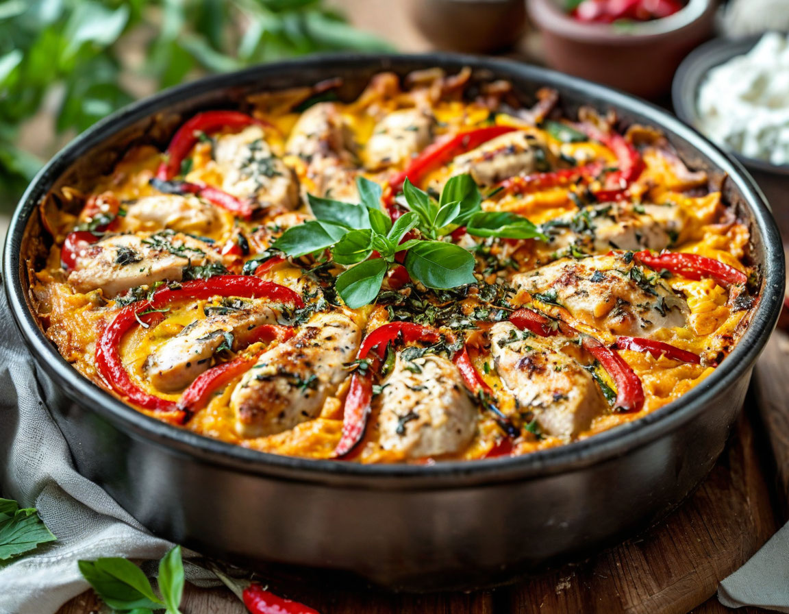 Запекать 30-40 минут при 180°C до золотистой корочки.