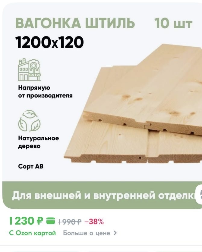 Вы думаете что невозможно за 15 тыс сделать нормальный и красивый ремонт? В этой статье я докажу обратное. Речь пойдет об этом ремонте в гостиной нашего загородного дома, тут весь ход работ: Для ремонта моей комнаты было куплено 4 пачки вагонки на Озон. Ниже на фото цена. 4 пачки это 4920 Над вагонкой были запланированы обои с ботаническим принтом. Я долго искала и подбирала, все что мне нравилось стоило от 4К за рулон. Дороговато для меня. Я готова была потратить до 2500. Но вдруг я нашла на любимом ВБ прям то что надо и за цену в 2 раза дешевле. Артикул 254300283 Прибавляем к вагонке, получаем 6220. Это материал для одной стены. Остальные стены покрыты однотонными серыми обоями, я решила их перекрасить. Да, можно красить практически любые обои, которые не под окраску. Я уже так делала в других комнатах и все отлично. Краску купила в Лемана Про. Для вагонки взяла Дулюкс. Уже красила ей вагонку, результат отличный. Заколеровала в оттенок Y482 по палитре Тиккурила. Это вот такой к