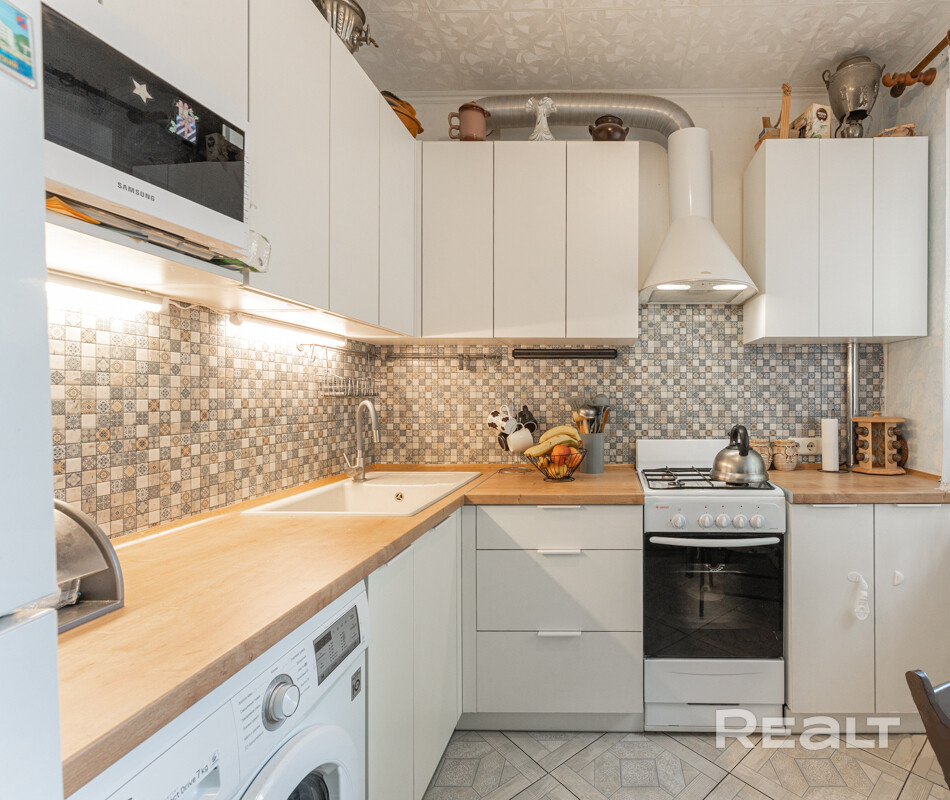 Начинаем нашу подборку с однокомнатной квартиры с балконом в районе Золотой Горки. Она расположена на третьем этаже пятиэтажной панельки по адресу Берестянская, 9. Это между станциями метро «Площадь Победы» и «Площадь Якуба Коласа». До каждой из станций пешком можно дойти минут за 10-15. А в пяти минутах ходьбы находится один из последних несетевых магазинов Минска — «Златагорскі» (мы о нем рассказывали).
