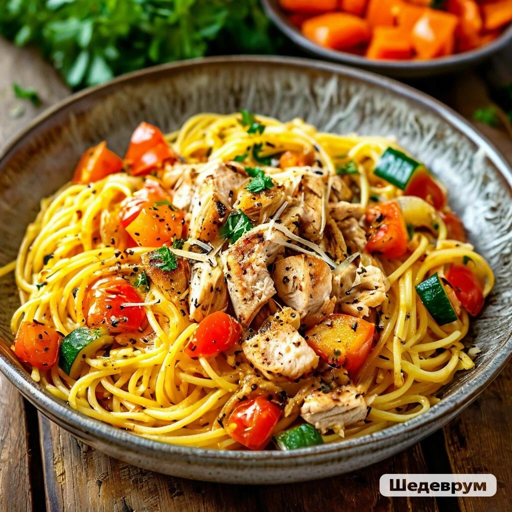 ΠΡΠ΅Π΄Π»Π°Π³Π°Ρ ΠΏΡΠΈΠ³ΠΎΡΠΎΠ²ΠΈΡΡ Π²ΠΊΡΡΠ½ΡΠΉ ΠΈ Π±ΡΡΡΡΡΠΉ ΡΠΆΠΈΠ½ - ΠΌΠ°ΠΊΠ°ΡΠΎΠ½Ρ Ρ ΠΎΠ²ΠΎΡΠ°ΠΌΠΈ ΠΈ ΠΊΡΡΠΈΡΠ΅ΠΉ. πͺΠΠ½Π³ΡΠ΅Π΄ΠΈΠ΅Π½ΡΡ: - ΠΌΠ°ΠΊΠ°ΡΠΎΠ½Π½ΡΠ΅ ΠΈΠ·Π΄Π΅Π»ΠΈΡ (Π½Π°ΠΏΡΠΈΠΌΠ΅Ρ, ΡΠΏΠ°Π³Π΅ΡΡΠΈ) - 200 Π³ - ΠΊΡΡΠΈΠ½ΠΎΠ΅ ΡΠΈΠ»Π΅ - 300 Π³Β - Π»ΡΠΊ - 1 ΡΡ. - ΠΌΠΎΡΠΊΠΎΠ²Ρ - 1 ΡΡ.Β - ΠΏΠ΅ΡΠ΅Ρ Π±ΠΎΠ»Π³Π°ΡΡΠΊΠΈΠΉ - 1-2 ΡΡ. - ΠΏΠΎΠΌΠΈΠ΄ΠΎΡΡ - 2-3 ΡΡ.Β - ΡΠ΅ΡΠ½ΠΎΠΊ - 1 Π·ΡΠ±ΡΠΈΠΊΒ - ΡΠΎΠ»Ρ, ΠΏΠ΅ΡΠ΅Ρ - ΠΏΠΎ Π²ΠΊΡΡΡΒ - ΡΠ°ΡΡΠΈΡΠ΅Π»ΡΠ½ΠΎΠ΅ ΠΌΠ°ΡΠ»ΠΎ - Π΄Π»Ρ ΠΆΠ°ΡΠΊΠΈΒ π«ΠΡΠΈΠ³ΠΎΡΠΎΠ²Π»Π΅Π½ΠΈΠ΅: 1. ΠΡΡΠΈΠ½ΠΎΠ΅ ΡΠΈΠ»Π΅ Π½Π°ΡΠ΅Π·Π°ΡΡ Π½Π΅Π±ΠΎΠ»ΡΡΠΈΠΌΠΈ ΠΊΡΡΠΎΡΠΊΠ°ΠΌΠΈ ΠΈ ΠΎΠ±ΠΆΠ°ΡΠΈΡΡ Π½Π° ΡΠ°ΡΡΠΈΡΠ΅Π»ΡΠ½ΠΎΠΌ ΠΌΠ°ΡΠ»Π΅ Π΄ΠΎ Π·ΠΎΠ»ΠΎΡΠΈΡΡΠΎΠ³ΠΎ ΡΠ²Π΅ΡΠ°.Β 2. ΠΡΠΊ ΠΈ ΠΌΠΎΡΠΊΠΎΠ²Ρ Π½Π°ΡΠ΅Π·Π°ΡΡ ΠΌΠ΅Π»ΠΊΠΈΠΌΠΈ ΠΊΡΠ±ΠΈΠΊΠ°ΠΌΠΈ ΠΈ Π΄ΠΎΠ±Π°Π²ΠΈΡΡ ΠΊ ΠΊΡΡΠΈΡΠ΅. ΠΠ±ΠΆΠ°ΡΠΈΠ²Π°ΡΡ Π½Π΅ΡΠΊΠΎΠ»ΡΠΊΠΎ ΠΌΠΈΠ½ΡΡ, Π΄ΠΎ ΠΌΡΠ³ΠΊΠΎΡΡΠΈ ΠΎΠ²ΠΎΡΠ΅ΠΉ.Β 3. ΠΠΎΠ±Π°Π²ΠΈΡΡ Π½Π°ΡΠ΅Π·Π°Π½Π½ΡΠΉ Π±ΠΎΠ»Π³Π°ΡΡΠΊΠΈΠΉ ΠΏΠ΅ΡΠ΅Ρ ΠΈ ΠΏΠΎΠΌΠΈΠ΄ΠΎΡΡ, ΠΏΠΎΡΠΎΠ»ΠΈΡΡ ΠΈ ΠΏΠΎΠΏΠ΅ΡΡΠΈΡΡ ΠΏΠΎ Π²ΠΊΡΡΡ. Π’ΡΡΠΈΡΡ Π΅ΡΠ΅ 5-7 ΠΌΠΈΠ½ΡΡ.Β 4. Π’Π΅ΠΌ Π²ΡΠ΅ΠΌΠ΅Π½Π΅ΠΌ ΠΎΡΠ²Π°ΡΠΈΡΡ ΠΌΠ°ΠΊΠ°ΡΠΎΠ½Ρ Π΄ΠΎ Π³ΠΎΡΠΎΠ²Π½ΠΎΡΡΠΈ.Β 5. ΠΠΎΠ±Π°Π²ΠΈΡΡ ΠΌΠ°ΠΊΠ°ΡΠΎΠ½Ρ ΠΊ ΠΎΠ²ΠΎΡΠ°ΠΌ, ΠΏΠ΅ΡΠ΅ΠΌΠ΅ΡΠ°ΡΡ ΠΈ ΡΡΡΠΈΡΡ Π²ΡΠ΅ Π²ΠΌΠ΅ΡΡΠ΅ Π΅ΡΠ΅ 5 ΠΌΠΈΠ½ΡΡ. πΠΡΠΈΡΡΠ½ΠΎΠ³ΠΎ Π°ΠΏΠΏΠ΅ΡΠΈΡΠ°π½οΈ