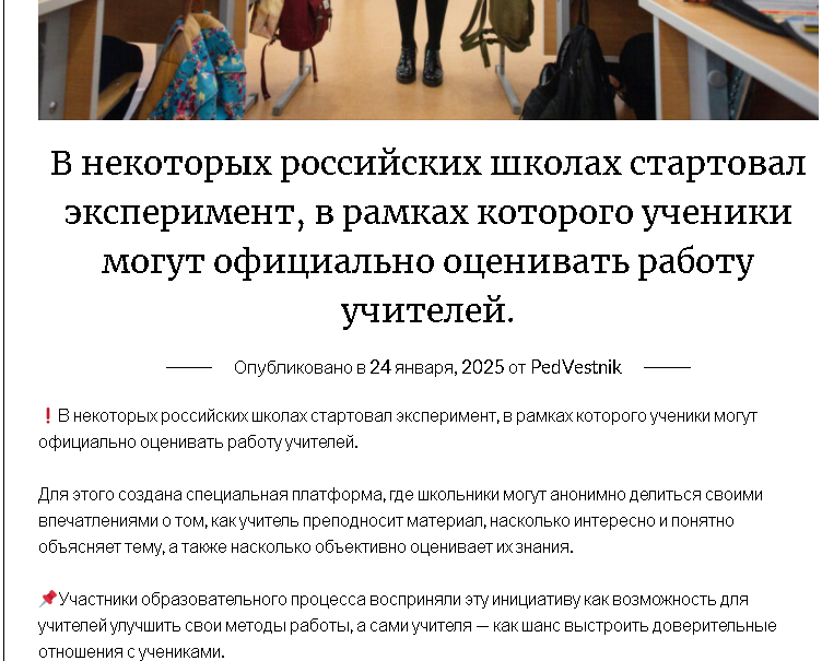 Если эксперимент будет успешным, то с 1 сентября 2025 года такая система оценки учителей будет внедрена во всех школах страны.