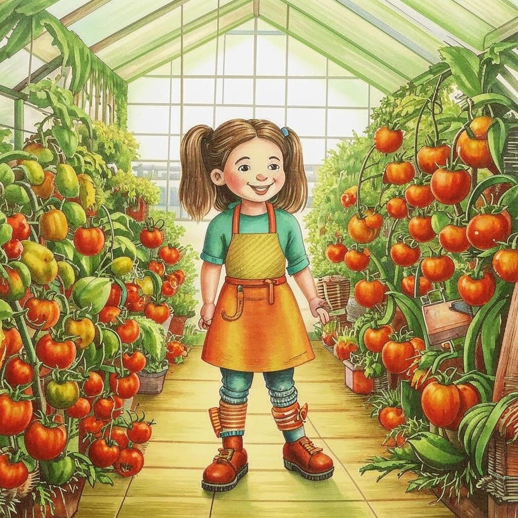 Даня, пухленькая девочка с косичками, всегда была готова помочь своей бабушке. Вот и сегодня она пришла к ней в гости, чтобы вместе заняться садоводством. Бабушка решила собрать урожай помидоров в своей уютной теплице, а Даня вызвалась ей помочь.