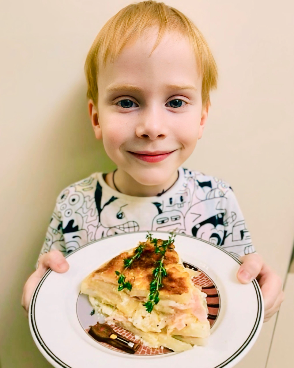 Как насчет картофельного гратена? То есть, запеканки! С ветчиной? И сыром?? Мммм! #едаиборода тут как тут с новым рецептом! Ингредиенты: -50 мл. оливкового масла; -1 ч. л. соли; -1 ч. л. перца; -1 ч. л. сушеного или свежего тимьяна; -½ Ч. л. молотого мускатного ореха; -300 г жирной сметаны; -90 г сыра пармезан; -1,5 кг картофеля; -300 г копченой ветчины; -300 г сыра проволоне (или моцарелла); Рецепт: -В большой миске смешайте оливковое масло, соль, перец, тимьян, мускатный орех и хорошо перемешайте. -Очистите картофель и нарежьте его тонкими ломтиками. Положите в миску и перемешивайте, пока каждый кусочек не будет равномерно покрыт маслом. -В форме для запекания смажьте дно оливковым маслом, а затем сметаной. -Выложите одну треть ломтиков картофеля, начиная с центра. Сверху смажьте сметаной и посыпьте пармезаном. -Положите ветчину, а затем сыр проволоне или моцарелла. Повторите этот шаг еще два раза (картофель, сливки, пармезан, ветчина, проволоне) или пока вы не используете