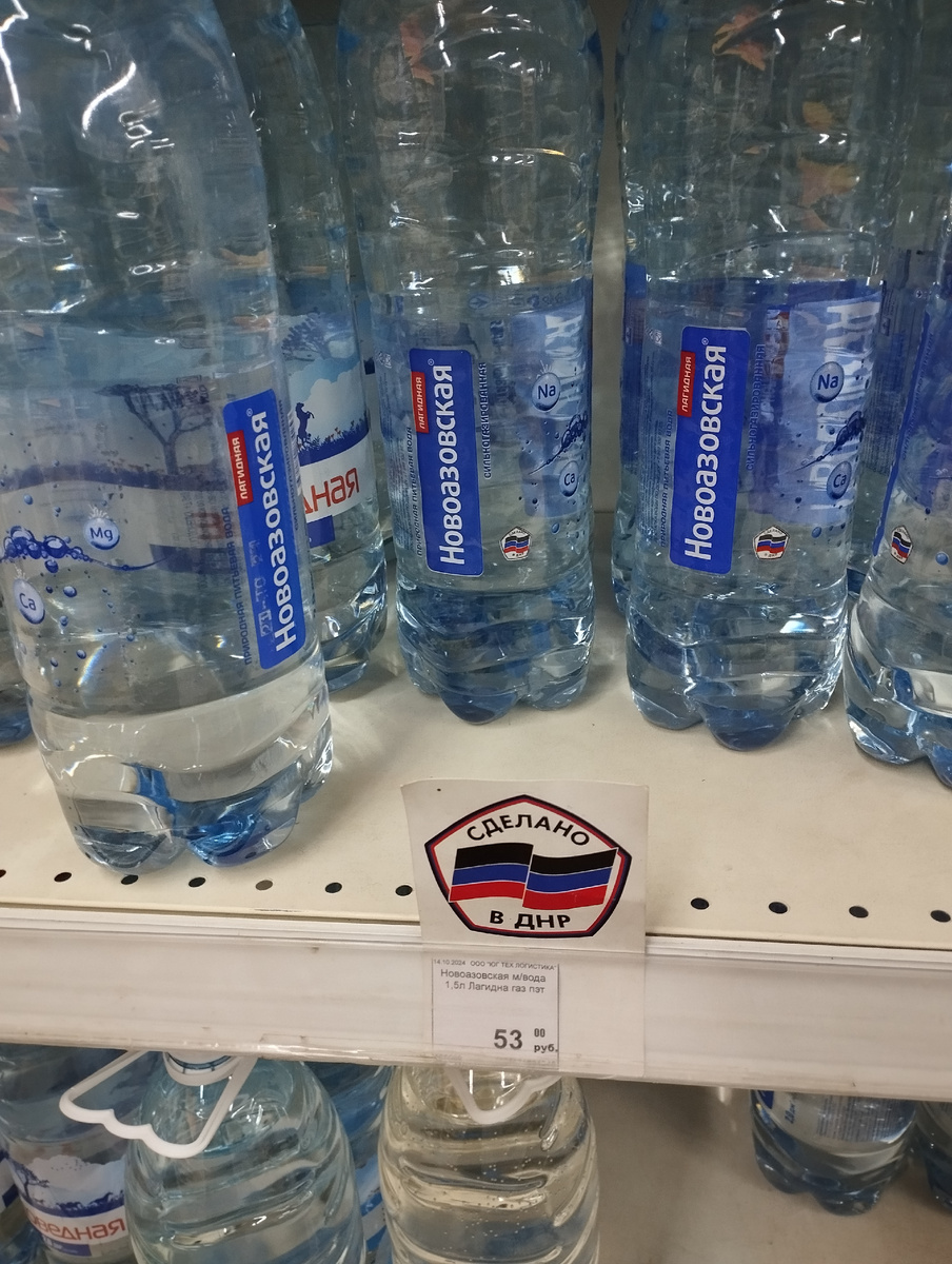 Любопытно, что, судя по комментариям подписчиков моего канала, большинство из них сегодня ратует за наши донецкие конфеты и торт. Именно Стрелу, Курочку Рыбу и Шахтёрский большинство рекомендовало мне везти в качестве гостинцев для родственников в центральной России: При этом кое-кто посоветовал взять с собой колбасы наших республиканских производителей. Полагаю, за сладкие гостинцы ратуют в первую очередь экс-дончане, для которых Курочка Ряба - это вкус детства. Также некоторые уже успели оценить новую продукцию донецких кондитеров. Модные сегодня конфеты без сахара. Подробней о них в предыдущей статье: Но давайте посмотрим, какую еще продукцию производят в ДНР. Уточню, на заглавном фото наша вода Новоазовская. А это подсолнечное масло от производителя МакМай из Макеевки. Ну, а это наши майонезы. Славолия работает в Донецке на базе советского маргаринового завода. Майонез там производят не только традиционный, но и салатный с меньшей жирностью. Помимо Славолии за него недавно взялся