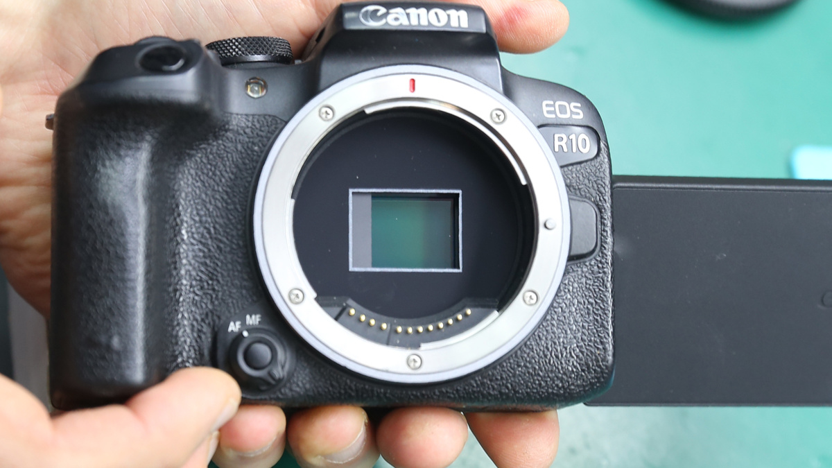 Canon EOS R10 – это относительно новая модель, которая была анонсирована весной 2022 года. Беззеркалка основана на довольно мощном «железе»: APS-C матрица 22.3 x 14.8 мм, которая позволяет делать снимки разрешением 6000 x 4000 пикселей (24.2 Мп). Также в данной модели применён электронный OLED видоискатель с разрешением 1024x768 и 2.36 млн. точек. Камера способна обеспечивать высокоскоростную непрерывную съёмку до 15 кадров в секунду с механическим затвором и до 23 кадров в секунду с электронным затвором. Почему мы заговорили про модель R10? Потому что данная тушка опять очутилась в наших руках. Проблема видна на лицо, вернее на «лице» – у Canon EOS R10 была перекошена шторка. Также фотоаппарат выдавал ошибку 30, со слов владельца. Это тоже говорит о проблеме с затвором. Такое обычно происходит после удара или падения. Проблему устранить сложно, поэтому решение в такой ситуации - замена затвора в сборе. Совет для владельцев камеры: в такой ситуации лишний раз камеру лучше не включать,