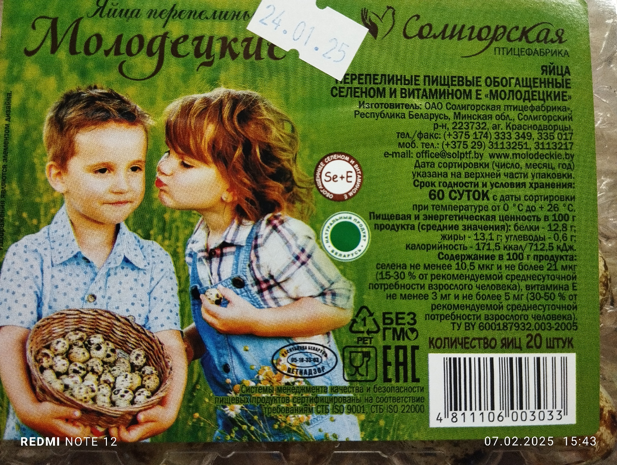 Учитывая печальный прошлый опыт покупки перепелиных яиц (можно прочитать тут), решила купить в чижике. Цена по состоянию на 07.02.25 г. 129 руб. Изготовитель ОАО "Солигорская птицефабрика" Республика Беларусь. На момент покупки 14 дней от начала срока годности. Общий срок годности 60 суток. Яйца не битые, треснутые отсутствовали, в пачке по стандарту 20 шт. Проверила на свежесть опустив в воду. (как провести подробно тест писала тут) Все яйца остались на дне, ничего не всплыло! Яйца свежие! Подписывайтесь, будет еще много полезных и не очень находок из бюджетных магазинов!