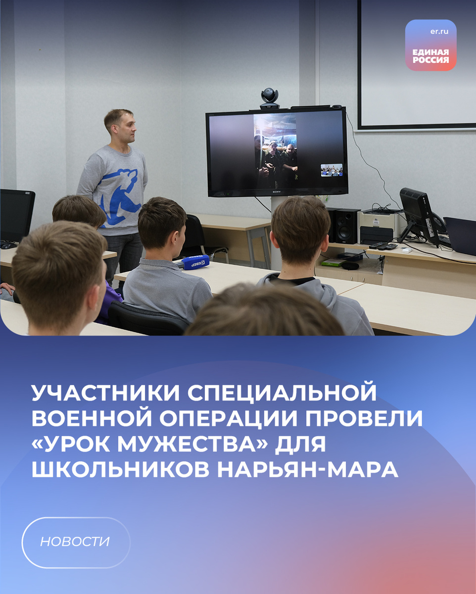 В фонде «Защитники Отечества» старшеклассники школы №4 пообщались по видеосвязи с бойцами из НАО, которые сейчас выполняют боевые задачи в зоне СВО.
