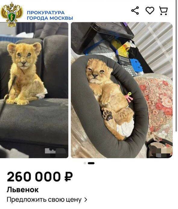 7 февраля объявление разместили в Сети на бесплатной площадке.За трехмесячную самку хотели получить 260 тыс. руб. «В ходе проверки информации прокуроры выявили на платформе бесплатных объявлений предложение о продаже детеныша льва за 260 тысяч рублей. В результате инсценированной покупки львенок, а точнее львица в возрасте трех месяцев была изъята», — говорится в сообщении. Как выяснилось,продавец не смог предоставить документы, подтверждающие законность владения животным, сотрудникам надзорного ведомства. Львенка передали специалистам в реабилитационный центр диких животных Департамента природопользования и охраны окружающей среды.Там уже начались соответствующие обследования новой подопечной. Устанавливаются обстоятельства покупки, содержания и перевозки льва, который занесен в список видов животных, «подпадающих под действие Конвенции о международной торговле видами дикой фауны и флоры, находящимися под угрозой исчезновения (СИТЕС)». Прокуроры также инициировали проверку из-за воз