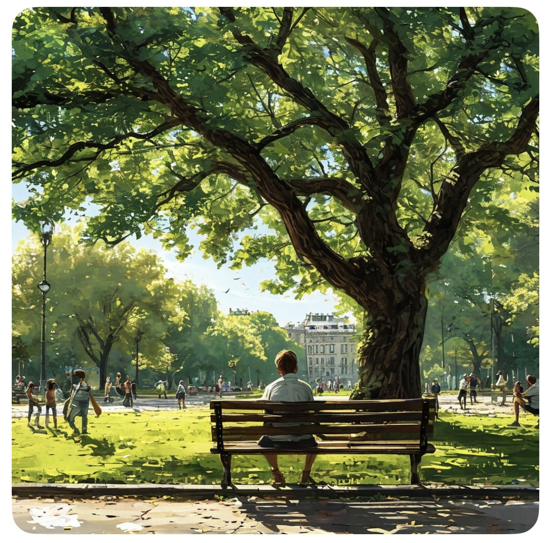 Он закрыл глаза и услышал детский смех, почувствовал тёплый летний ветер на коже. Летняя листва шептала вокруг него, а солнце согревало.