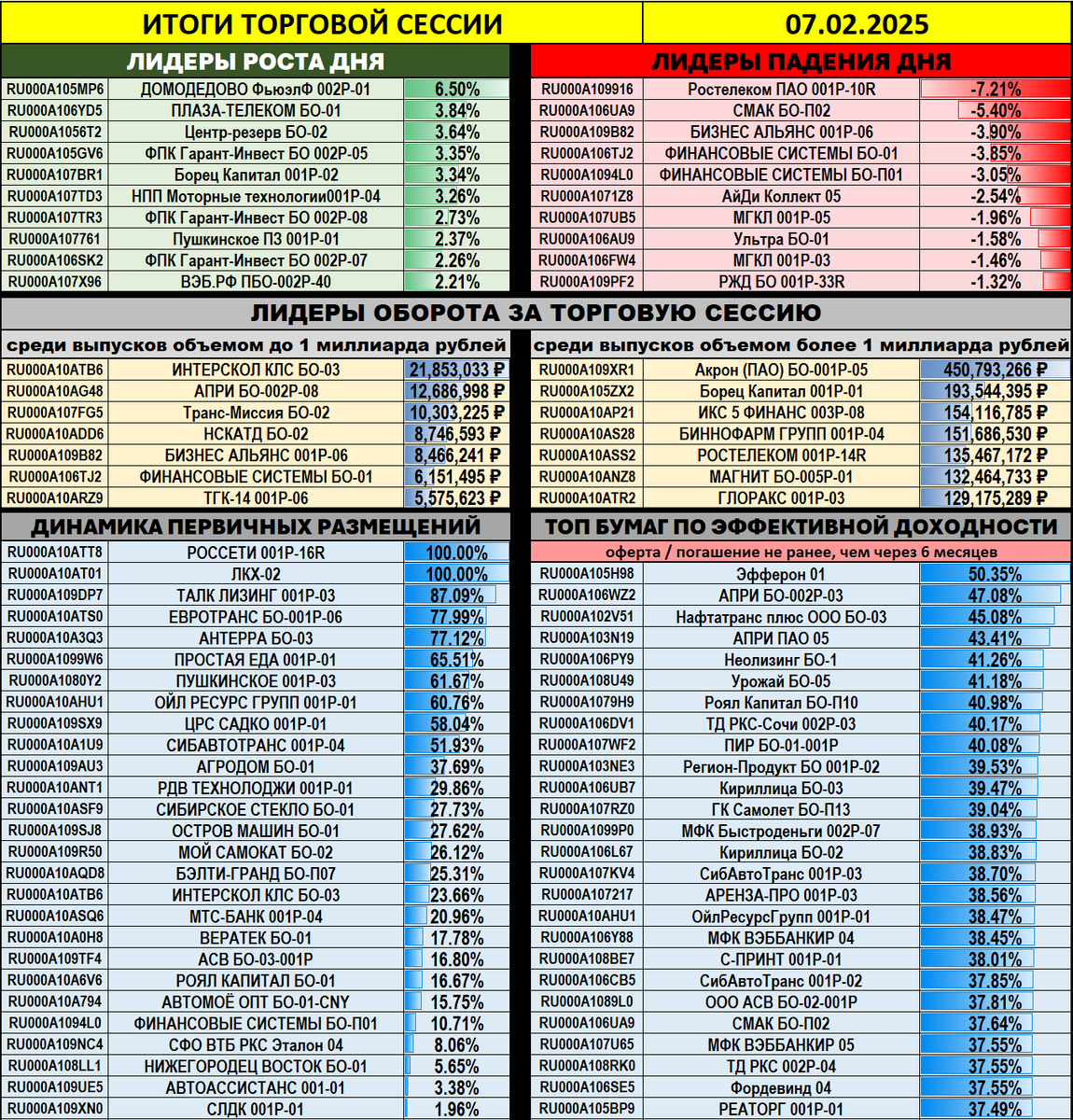 🆕 Обновлена картинка с итогами торговой сессии - в ней появились тикеры для лучшей идентификации бумаг. Напомню, что картинка эта по сути сводная всех остальных, если вы не нуждаетесь в больших деталях. Обратную связь по обновленной визуализации буду рад услышать :)