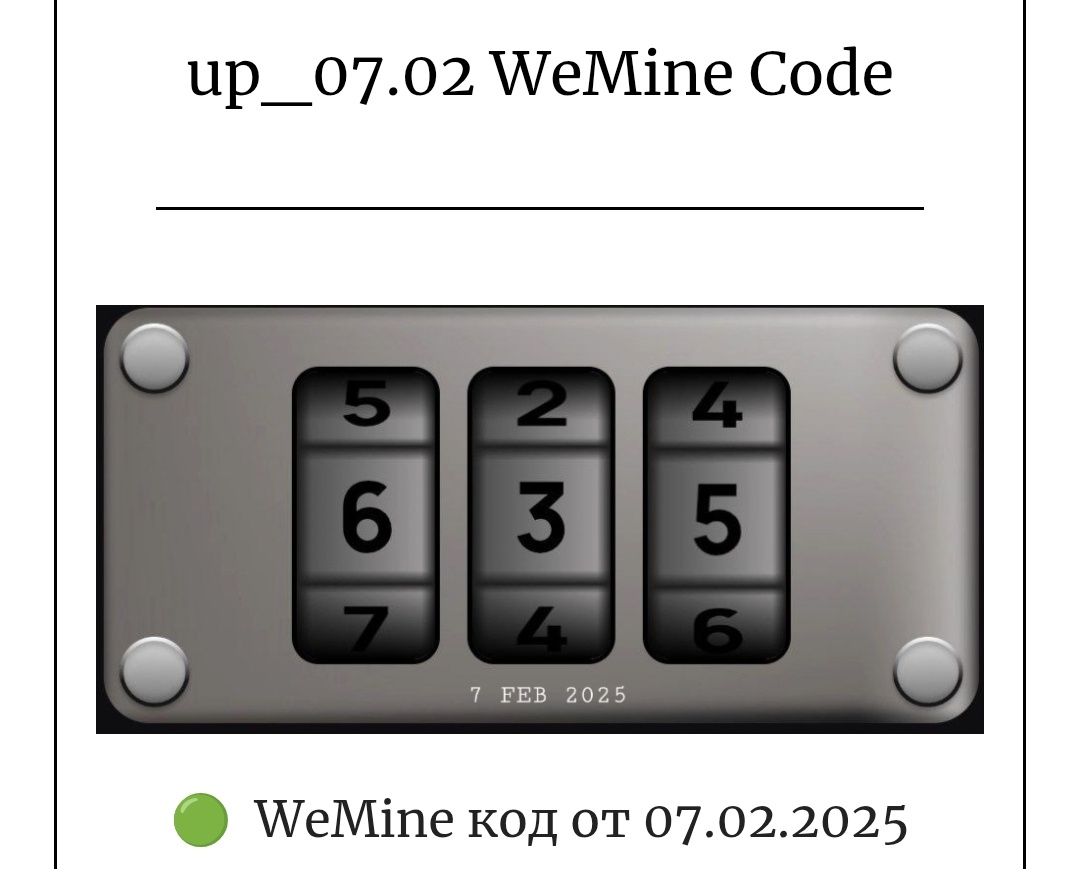 Код на сегодня вимайн НОВЫЙ ЕЖЕДНЕВНЫЙ КОД от КЕЙСА в WeMine на 07 февраля 2025 07.02.2025 WeMine Daily Combo Code Сегодня, 07.02.2025, КОД от КЕЙСА в WeMine: 635 Вводим код от кейса, чтобы получить вознаграждение. Код обновляется ежедневно в 20:00МСК До 8 февраля Ожидаем запуск нового пула в майнере USDT . Запуск https://t.me/WeMineBot/mine?startapp=ref_3NYLPNVN8E
