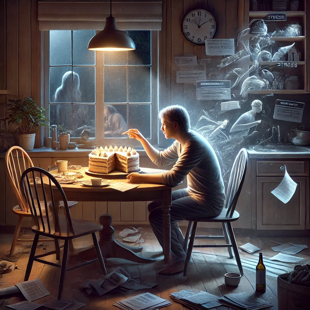 Многие сталкивались с ощущением, когда рука сама тянется за чем-то вкусненьким после напряжённого дня. Громадный кусок торта вдруг становится лучшим другом. Но почему это происходит? Что за невидимый враг заставляет нас заедать стресс? Сегодня мы разберёмся в природе пищевой зависимости и узнаем, как перестать быть её заложником. Начнём с того, что такое стресс. Это состояние напряжения, которое организм воспринимает как сигнал к мобилизации всех ресурсов для выживания. Наш инстинкт самосохранения миллионы лет держал нас в боевой готовности — мы бегали от хищников, сражались за еду и территорию. Но мир изменился. Никто больше не гонится за нами с дубиной, но древние механизмы остались. Современные угрозы — это злой начальник или наглый водитель, подрезавший на дороге. Казалось бы, мелочь. Но организм реагирует так, будто мы в джунглях встретили тигра. Адреналин и кортизол выстреливают в кровь, а выброс эмоций подавляется, ведь в обществе агрессия не приветствуется. В результате челов