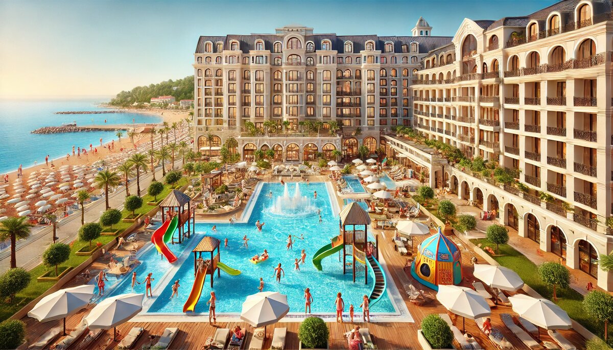 - Особенности: аквапарк, луна-парк, детская комната с няней.