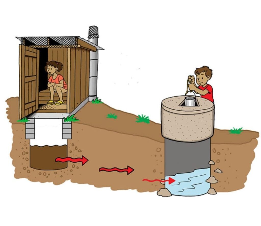 Выгребная яма дачного туалета или септика из бетонных колец является потенциальным источником загрязнения грунтовых вод. При неправильной установке или износе конструкции сточные воды могут просочиться в почву и попасть в водоносные слои. Это может привести к отравлению грунта и питьевой воды, создавая угрозу здоровью людей и животных.