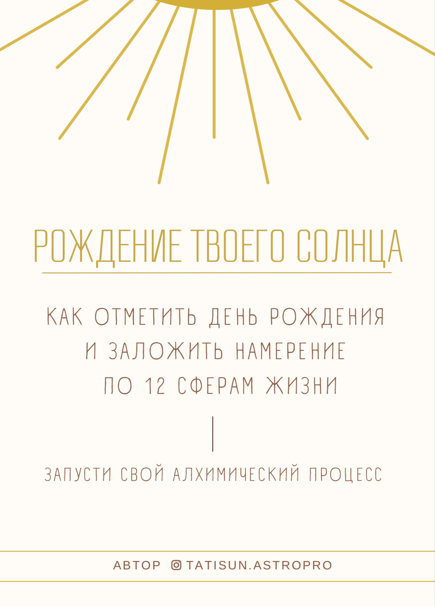Я знаю людей, которые не любят свой День рождения. Не отмечают его или тратят свою энергию на других: гости, еда, развлечения. На следующий день чувствуют себя уставшими и не наполненными. Если ты не празднуешь свой день, не даёшь своей психике перестроиться, обновиться. Старое тянет из тебя энергию и не даёт прийти новому. Текстовый формат: красиво оформленный формат PDF, 29 страниц Удобно: можно читать с телефона, планшета, компьютера *Этот гайд я писала, обращаясь к женщинам, так как когда-то у меня была исключительно женская аудитория. Сейчас среди подписчиков появилось много чудесных мужчин. Поэтому если вы мужчина и хотите приобрести гайд по встрече Соляра, обратите внимание, что обращения в гайде в женском роде. Но это не влияет на смысл ритуалов, их могут проводить абсолютно все! Приобрести гайд можно здесь https://sprosivselennuju.ru/