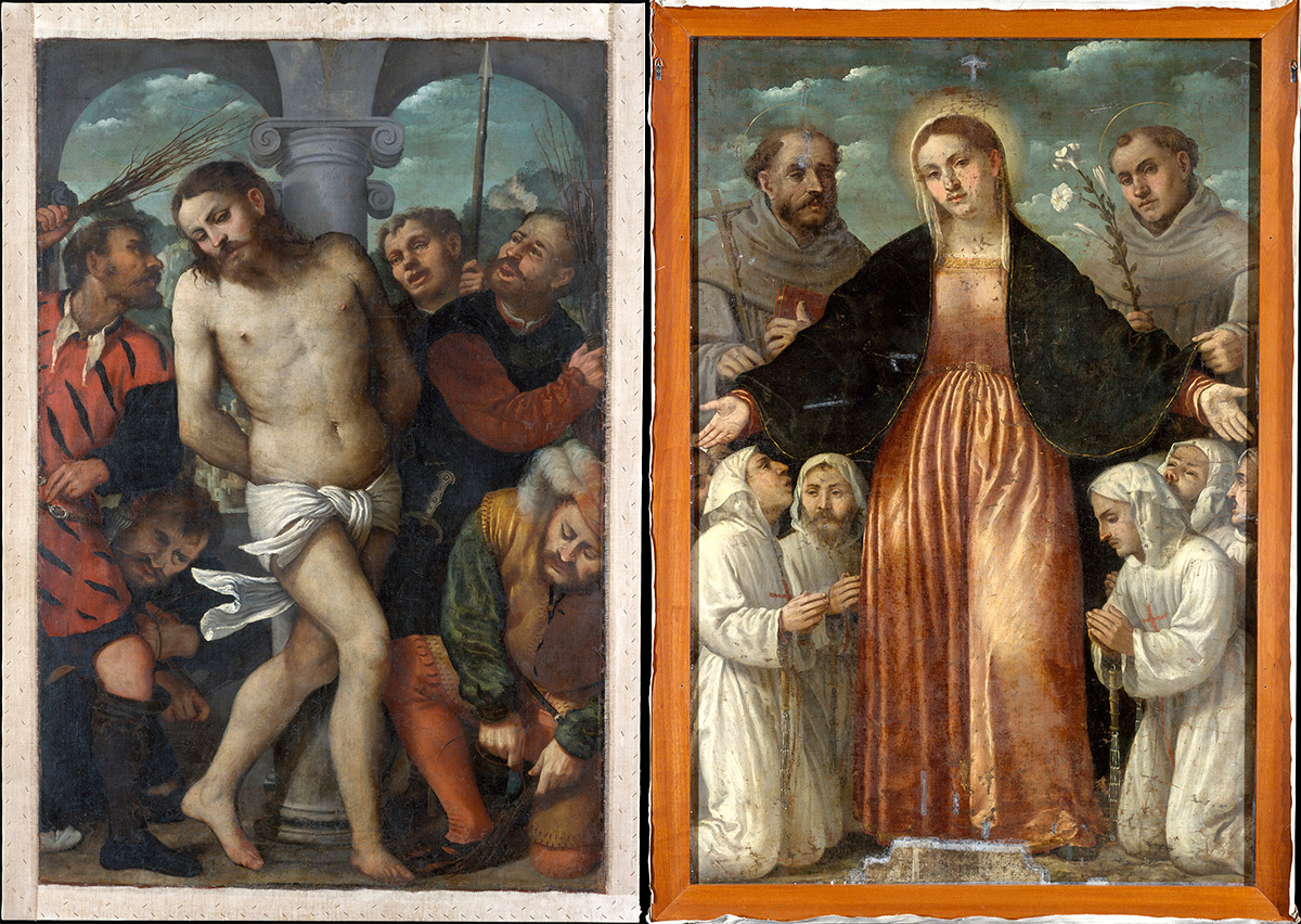 Джироламо Романино «Бичевание и (на обороте) Мадонна Милосердия», ок. 1540 г.