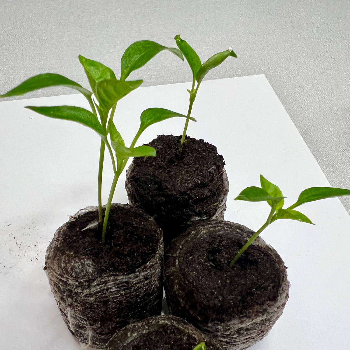 Сегодня я хочу поделиться новостями о выращивании комнатного перца «Семицветик». Этот эксперимент начался 20 дней назад, и уже сейчас он радует меня своими результатами. Если вы пропустили начало, вот ссылка на первый пост, где я рассказывал о старте этого проекта. Все 5 посаженных семян уже взошли! Это неожиданно, но приятно. В одну из четырёх торфяных таблеток я посадил 2 семени, и они взошли первыми. Остальные ростки появились через 3-4 дня. Корневая система перца развивается очень быстро — она уже начала выходить за границы торфяных таблеток. Это значит, что на днях мне придётся пересадить перцы в горшки. Честно говоря, я думал, что эксперимент в парничке продлится дольше, но природа решила иначе. Первые всходы уже обзавелись 4 листьями и готовятся к следующему этапу роста. Если всё пойдёт так же быстро, то через пару месяцев мы сможем увидеть первые плоды! Перец «Семицветик» — это не только декоративное, но и полезн