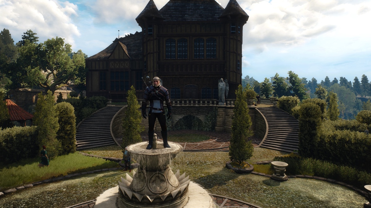 И вот Геральт на обширной лужайке перед особняком и может свободно обследовать всю территорию вокруг здания.