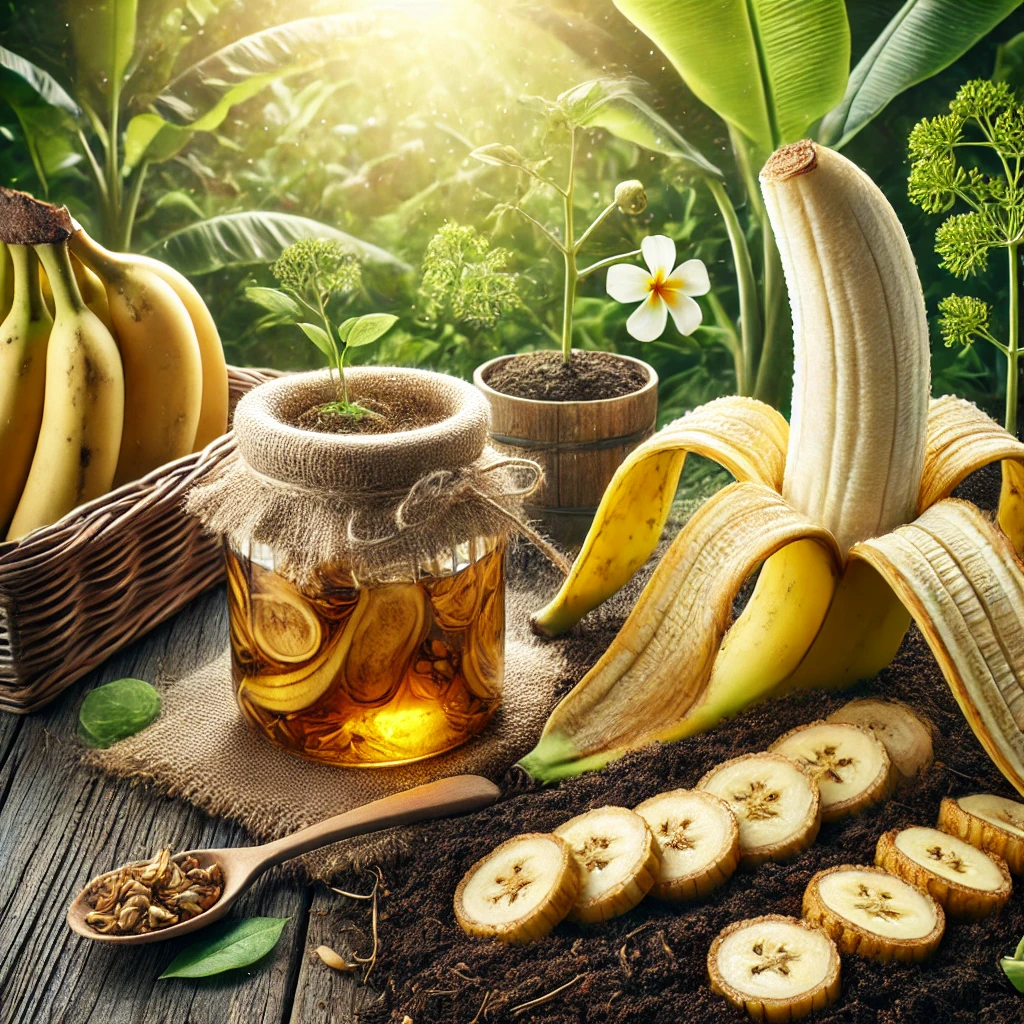 Органическое удобрение из кожуры банана: польза и способы применения Использование натуральных удобрений – отличный способ улучшить состав почвы и повысить урожайность без вреда для окружающей среды. Одним из самых доступных и эффективных вариантов является удобрение из кожуры банана. Этот органический продукт богат калием, фосфором и кальцием, что делает его ценным для роста растений. В этой статье мы разберем пользу банановой кожуры для почвы, способы её использования и приготовления удобрений. Польза банановой кожуры для растений Кожура банана содержит целый комплекс полезных веществ: • Калий (K) – укрепляет стебли, улучшает цветение и плодоношение. • Фосфор (P) – способствует развитию корневой системы. • Кальций (Ca) – необходим для правильного обмена веществ в растениях. • Магний (Mg) – участвует в процессе фотосинтеза. Благодаря такому составу, банановая кожура помогает растениям расти здоровыми, повышает их устойчивость к болезням и стрессам. Способы применения кожуры