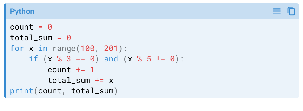 Пример: Найдите количество чисел от 100 до 200, которые делятся на 3, но не делятся на 5 Решение: Пример: Найдите минимальное и максимальное число от 50 до 500, которые делятся на 7 и заканчиваются на 1. Решение: Пример: Найдите все числа от 1 до 1000, у которых сумма цифр делится на 5. Решение: