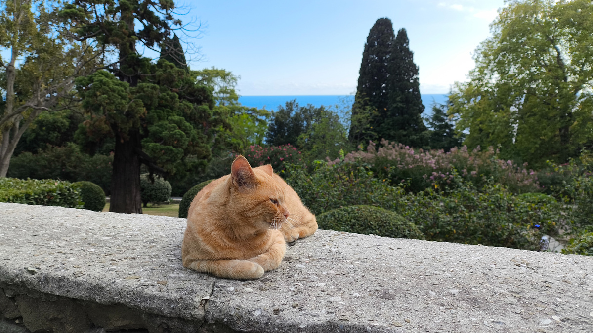 Приветствую вас на моём канале о моей жизни в Севастополе ⚓☀⛵☀⚓ Ездили мы в Алупку 5 октября 2024 года. Часть 1 тут: После прогулки по городу мы пошли в Воронцовский парк. В парке вальяжно лежат котики. В кадр попал только 1. Котики холеные. Видно, что сытые. Справа- дерево бесстыдница Тут стало очень красиво и ухожено Было очень жарко. Поэтому я пошла к источнику и немного обмылась холодной водой Идем ко входу Здесь растет гигантский платан Тут находится касса музея Вышли на площадь у Дворца Лебединое озеро Но где же лебеди? А лебеди были на втором озере)) За лебедями наблюдал симпатичный котик Пошли к платанам. Какие же они прекрасные и огромные!! Но обнималась я с сосной. Не менее прекрасной и тоже огромной Мы решили пойти к Южным терассам. Тут шел ремонт дорожек, поэтому нам пришлось пролезть через заграждения... Здесь , кроме нас никого не было. Любуемся южным фасадом Воронцовского Дворца Здесь высажены кусты лавра и очень красиво подстрижены Ну как тут не сфотографирова