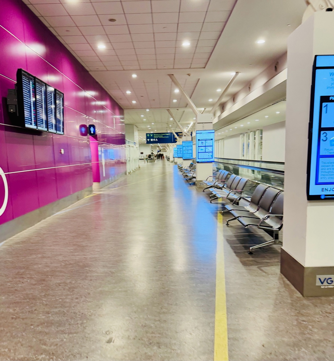 А, собственно, под табло - тадам! стеклянные шайтан-двери автоматические валидаторы, которые снова нас безошибочно определили в системе, даже показали фотку, которую сделали при прилете, и пропустили нас внутрь, снова не поставив штампик: