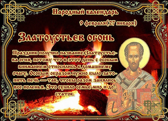 Православная церковь 9 февраля почитает память святителя Иоанна Златоуста (347-407). Этот византийский церковный деятель славился своими псалмами и проповедями. В Византии и на Руси его считали идеалом проповедника.