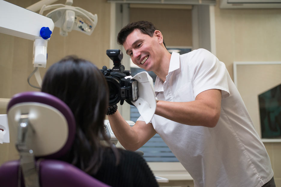 Вместо такого осмотра у нас существует обязательный фотопротокол. Это ряд фотографий: с улыбкой, без улыбки, с сомкнутыми зубами, верхняя и нижняя челюсть. Каждому пациенту, который к нам приходит, врачи обязаны сделать такое стоматологическое портфолио. Это неотъемлемый этап диагностики и часть истории болезни. В сложных случаях врачи разного профиля собираются на консилиум и по фотопротоколу совместно обсуждают методы лечения. Без него пациенту пришлось бы сидеть в кресле с открытым ртом, пока мы все обсудим. А так это происходит заочно. И делается ради комфорта пациента, чтоб не гонять его по врачам. Считаю наличие фотопротокола своего рода лакмусовой бумажкой, показывающей профессиональный уровень клиники.
