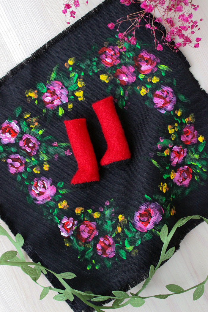 Однажды (а именно 25 декабря) что-то на меня нашло, и я расписала миниатюрный платок. Как обычно, слепила из того, что нашла в доме: отреза чёрного канваса и акриловых красок.