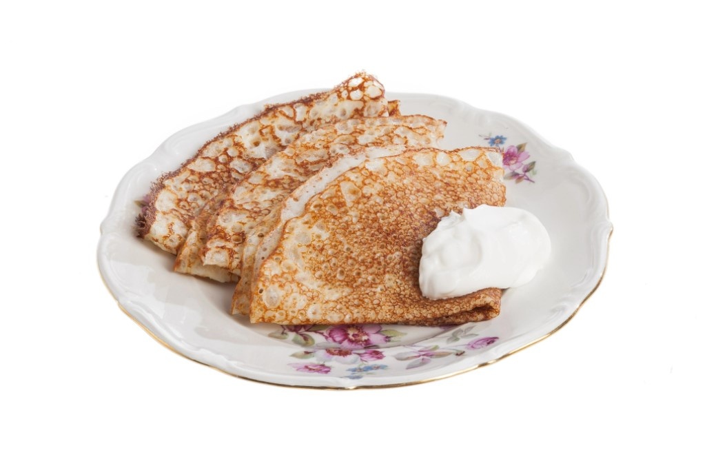 Блины получатся тонкими, если тесто будет эластичным, но жидким. Наш рецепт поможет понять, как это сделать. Еще понадобится сковородка с толстым дном: на такой блины пропекаются равномерно. Куриное яйцо 2 штуки Вода 250 мл Молоко 250 мл Пшеничная мука 145 г Растительное масло 30 мл Топленое масло 30 г Соль 1 чайная ложка