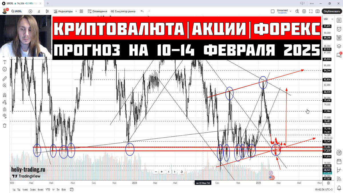 Прогноз криптовалюты, акций, форекс на 10 - 14 февраля 2025: eurusd евро/доллар, gbpusd фунт/доллар, usdchf доллар/франк, usdjpy доллар/иена, индекс доллара, валюта usd, usdrub доллар/рубль, cnyrub юань/рубль, криптовалюта, биткоин btc, эфириум eth, лайткоин ltc, рипл xrp, солана sol, бинанскоин bnb, тонкоин ton, индекс криптовалют total3, альткоин usdt, золото xauusd, серебро xagusd, нефть b EURUSD ЕВРО/ДОЛЛАР – восходящая коррекция не пробила сильный уровень сопротивления 1.0420 и начала уверенно разворачиваться вниз.