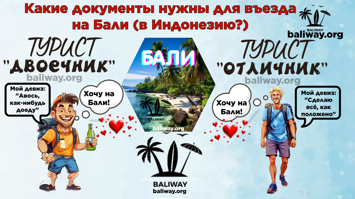 Для образного понимания данного вопроса, я предлагаю взять два типичных образа туристов, которые собрались лететь на Бали. Один из них, так называемый "ДВОЕЧНИК", а второй - "ОТЛИЧНИК". Это никоим образом не относится к их интеллектуальным способностям. Скорее это два типажа туристов, которые часто встречаются.