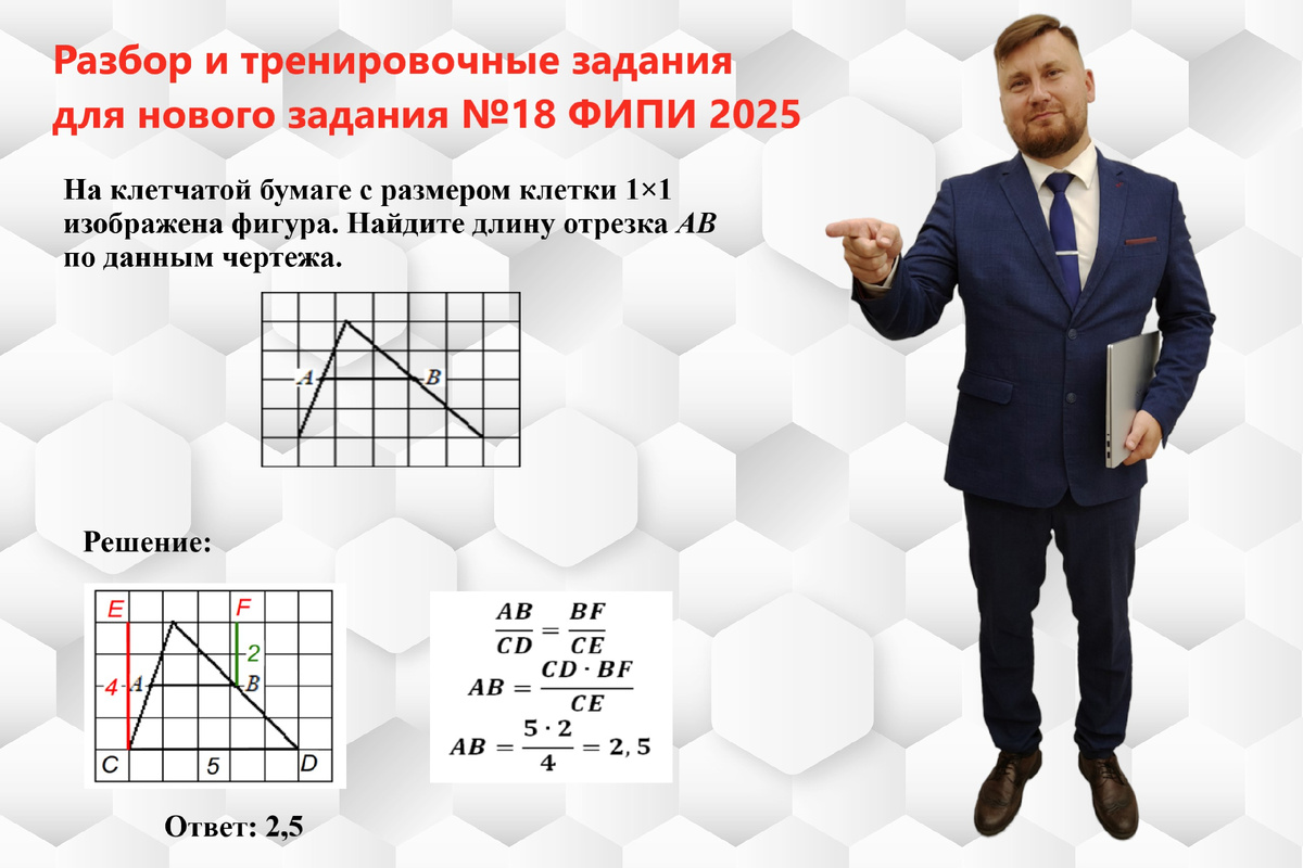 Задание 18. (18.10) На клетчатой бумаге с размером клетки 1×1 изображена фигура. Найдите длину отрезка AB по данным чертежа. Данные задания разобраны у меня в сообществе и прикреплён тренажёр к ним, ссылку прикрепляю:
