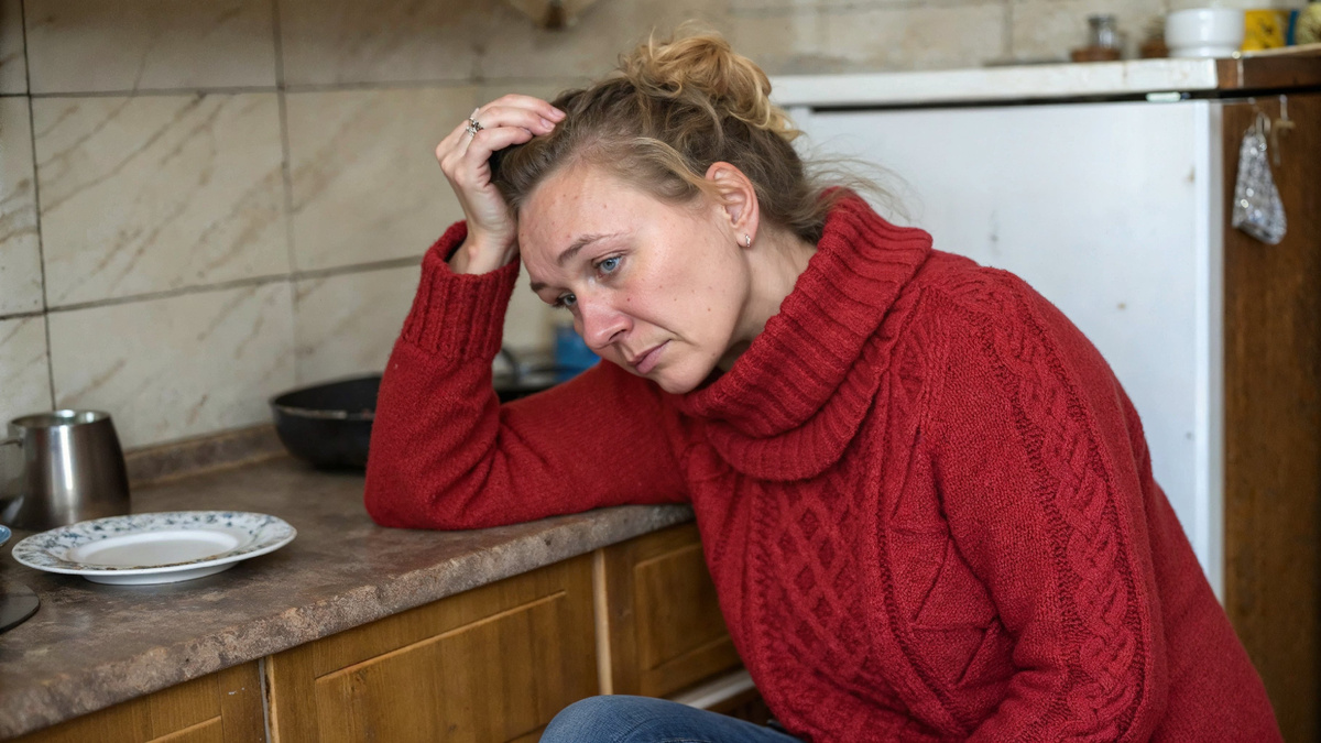 Она сидит, сжимая колени, а внутри будто рушится привычный мир.