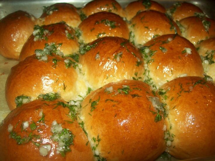 В теплом молоке растворите сахар и дрожжи. Оставьте на 10 минут, чтобы дрожжи активировались. В глубокой миске смешайте муку, соль, яйцо и размягченное сливочное масло. Добавьте молоко с дрожжами. Замесите тесто. Оно должно быть мягким, эластичным и не липнуть к рукам. Если тесто слишком липкое, добавьте немного муки. Накройте миску полотенцем или пищевой пленкой и оставьте в теплом месте на 1-1,5 часа, чтобы тесто подошло. Приготовление чесночной начинки: Смешайте размягченное сливочное масло с измельченным чесноком, зеленью и солью. Начинка готова. Формирование булочек: Подошедшее тесто обомните и разделите на небольшие кусочки (примерно по 50-70 г каждый). Раскатайте каждый кусочек в круглую лепешку. На середину