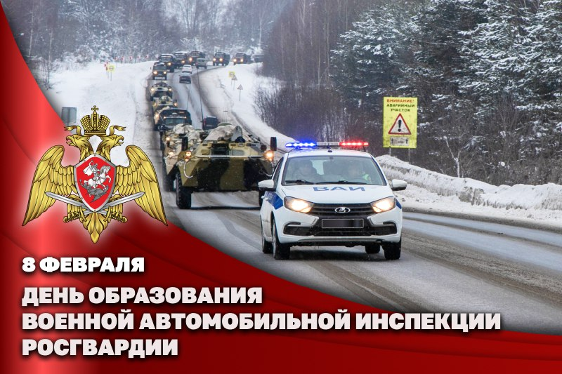 8 февраля отмечается 29-я годовщина со дня образования военной автомобильной инспекции войск национальной гвардии Российской Федерации.