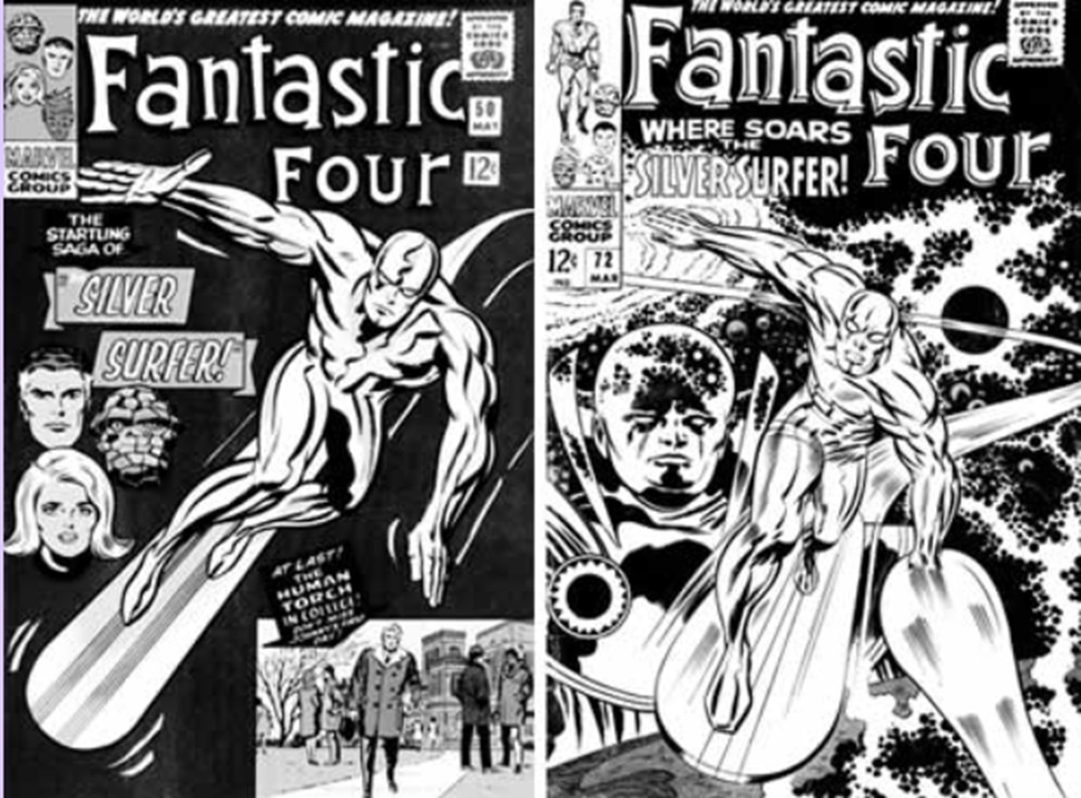 В комиксах достаточно давно происходят немыслимые по своему масштабу вещи, иногда запланированные, а иногда – нет. Таким незапланированным явлением стал невероятно успешный герой/злодей Серебряный Сёрфер. Возник он, к слову, почти случайно: во время работы над комиксом его придумал и воплотил Джек Кирби. Стэн Ли, кстати, отозвался о появлении этого персонажа весьма негативно: «В середине истории, которую мы так тщательно проработали, появился какой-то чокнутый на летающей доске для сёрфинга». Про разборки двух мастеров мы поговорим позже, а пока – давайте посмотрим на изображение, которое иллюстрирует текст.